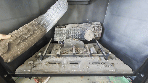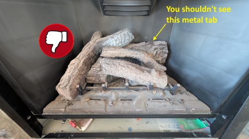 It’s not always easy to spot this defect, but a couple of clues would be heavy black soot on the logs or exposed metal tabs.