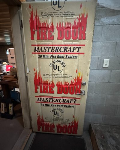 Jumbo-sized fire door label. Tired of complaints about the “Fire Door” stamp being too small on their doors, Mastercraft has gone the other direction with labeling. High-five.