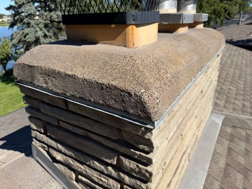 Nice crown. The masonry is intact, it overhangs the edges of the chimney, and there’s even a drip edge installed for a capillary break — excellent, excellent work.