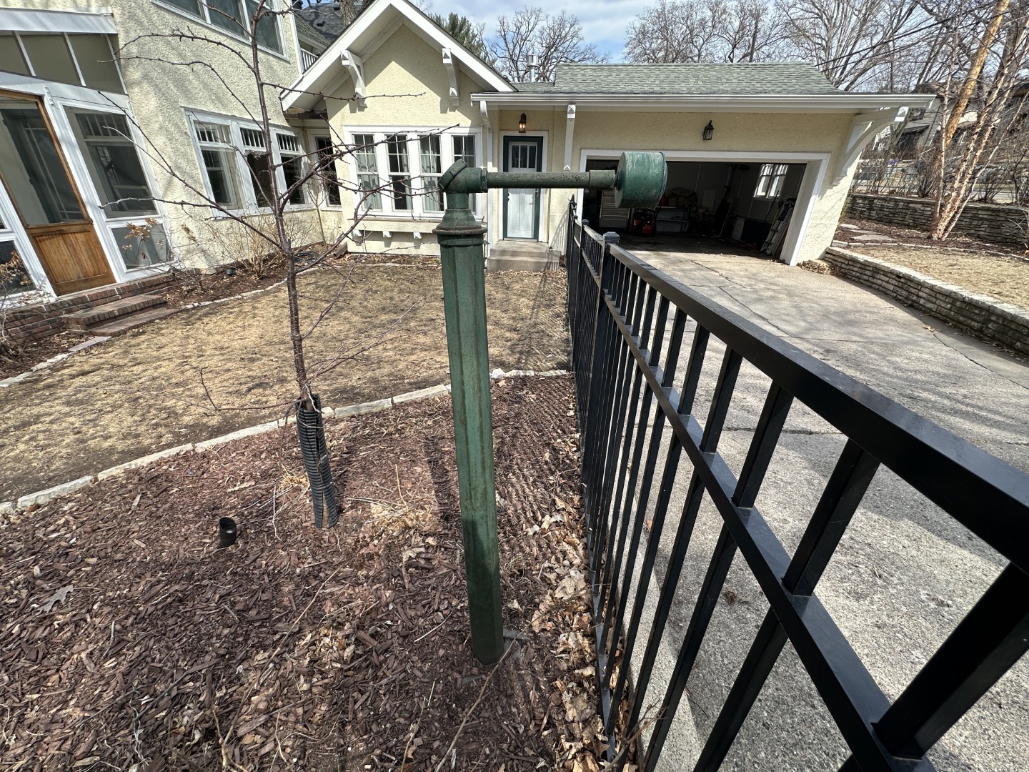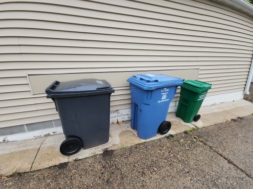 Trash can bumper. This is like chair-rail for garage cans, to help prevent damage to the vinyl siding. Genious.