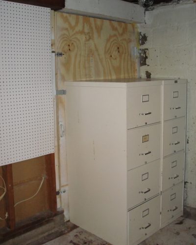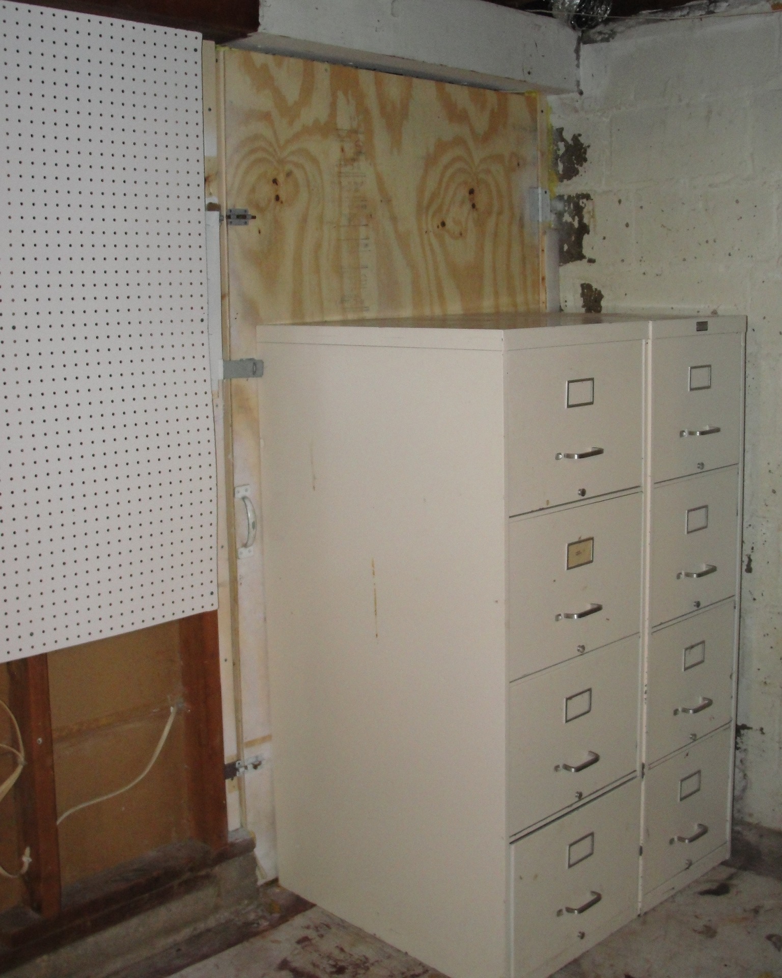 Not-so-hidden grow room – stacking a bunch of file drawers in front of the grow room is only going to make us more curious.