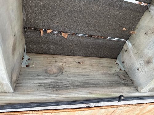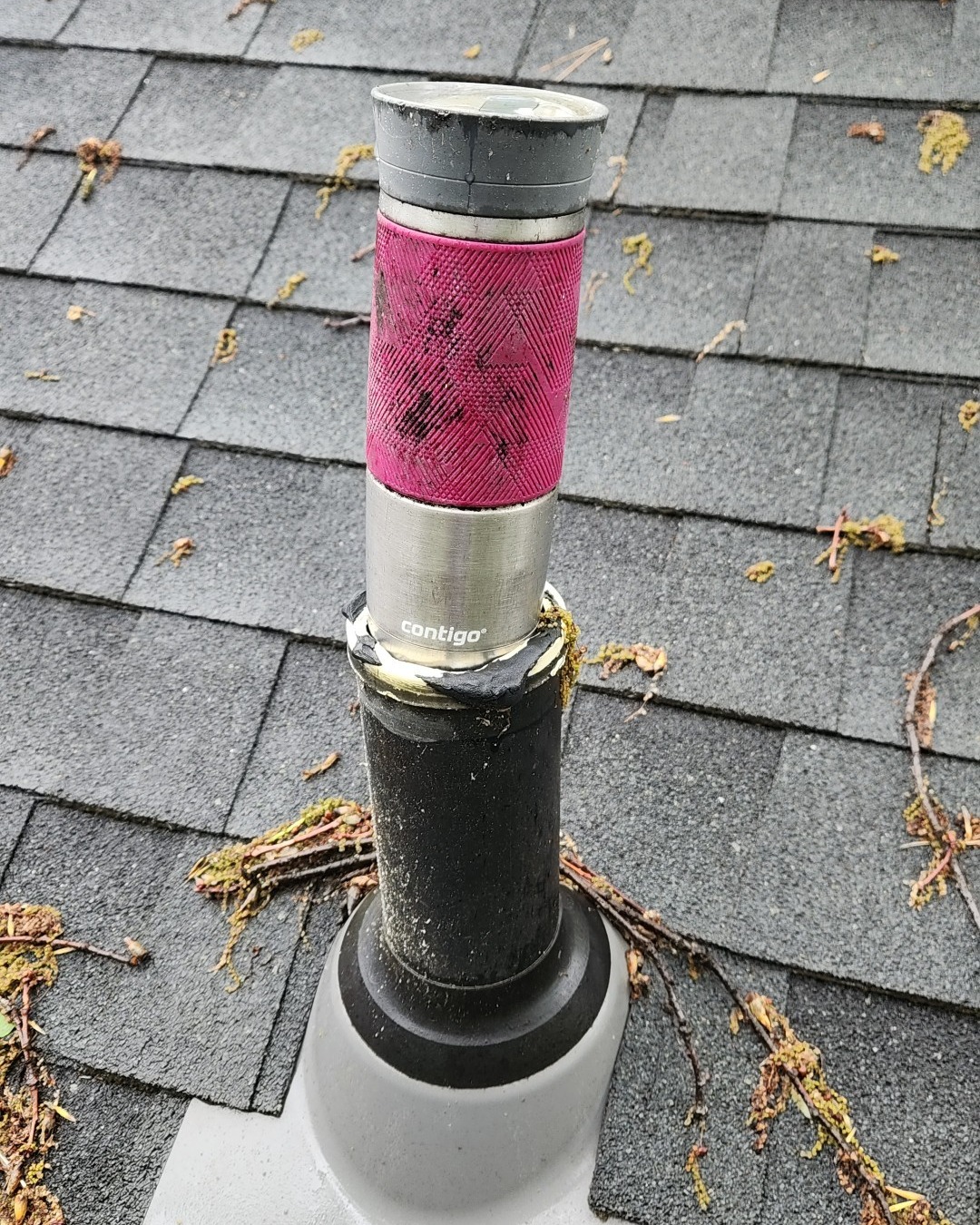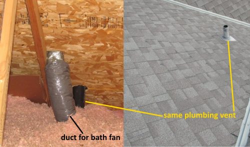 Another bath fan that doesn’t vent to the exterior. A bunch of people questioned this photo, saying these can’t possibly be from the same house, but I assure you, they are. I personally took both of these photos. The opening for the bath fan duct was completely shingled over.