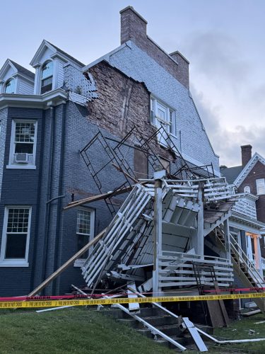 Failed brick veneer – this bonus photo makes 21, and it’s the only house we didn’t inspect. This was shared by a family member of one of our inspectors, showing their neighbor’s house after a catastrophic collapse of the brick veneer and scaffolding.